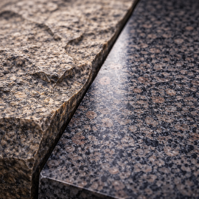 - Kombination aus polierten und rauhen Flächen